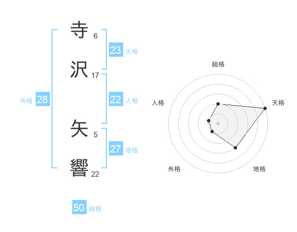 寺沢 矢響さんを姓名の画数から五運を鑑定