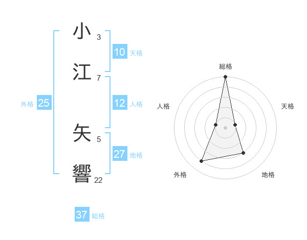 小江 矢響さんの総格は37画の5点!