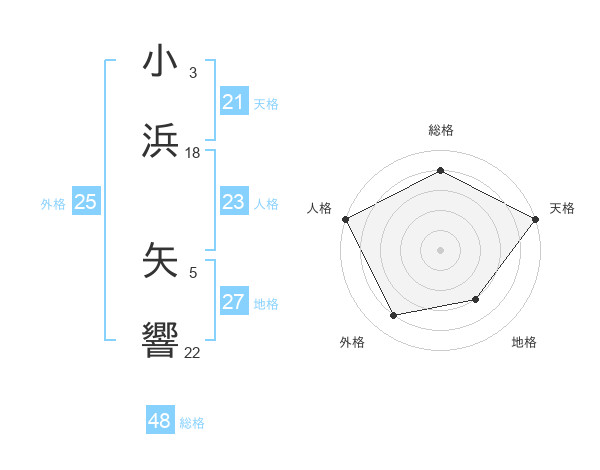 小浜 矢響さんを姓名の画数から五運を鑑定