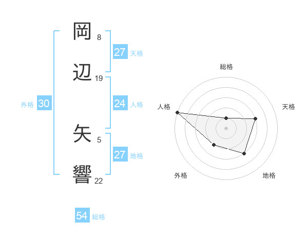 岡辺 矢響さんの総格は54画の1点!
