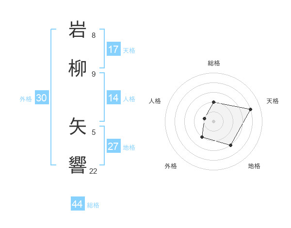 岩柳 矢響さんを姓名の画数から五運を鑑定