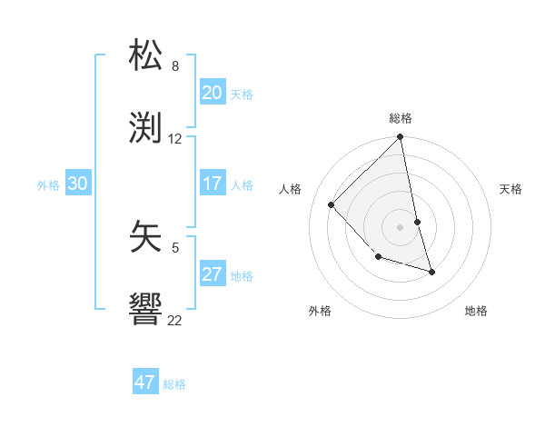 松渕 矢響さんを姓名の画数から五運を鑑定
