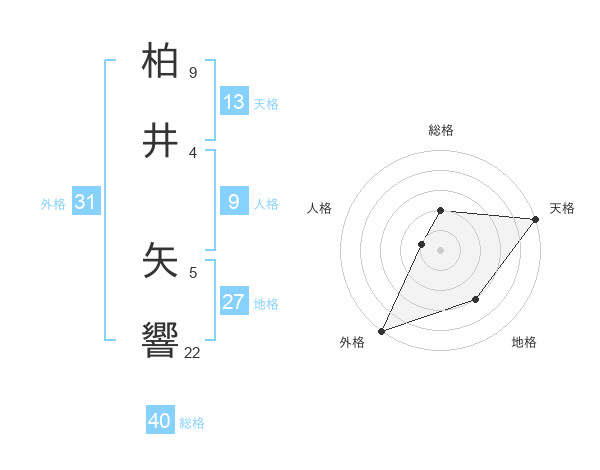 柏井 矢響さんの天格は13画の5点!
