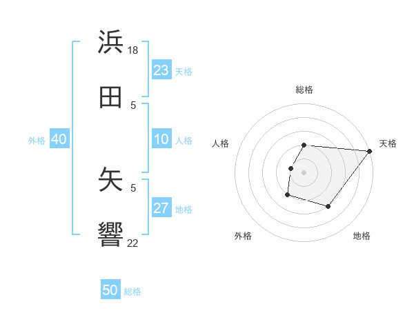 浜田 矢響さんの総格は50画の2点!