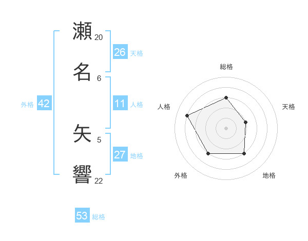 瀬名 矢響さんを姓名の画数から五運を鑑定