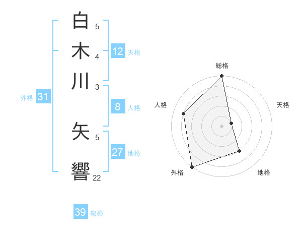 白木川 矢響さんを姓名の画数から五運を鑑定