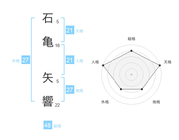 石亀 矢響さんの天格は21画の5点!