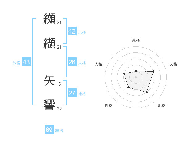 纐纈 矢響さんを姓名の画数から五運を鑑定