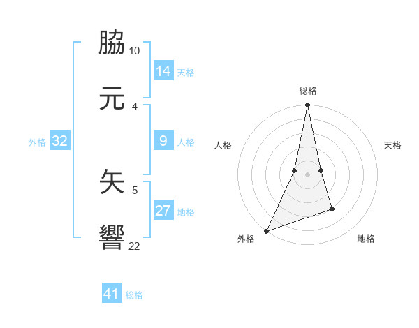 脇元 矢響さんの総格は41画の5点!