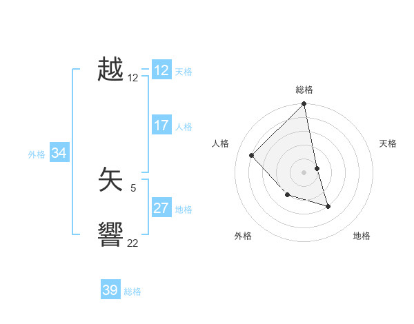 越 矢響さんの総格は39画の5点!