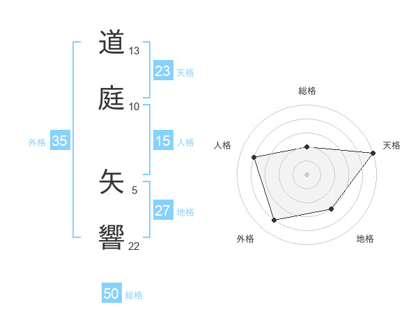 道庭 矢響さんを姓名の画数から五運を鑑定