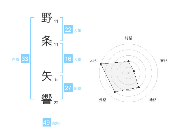 野条 矢響さんを姓名の画数から五運を鑑定