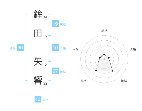 鉾田 矢響さんを姓名の画数から五運を鑑定