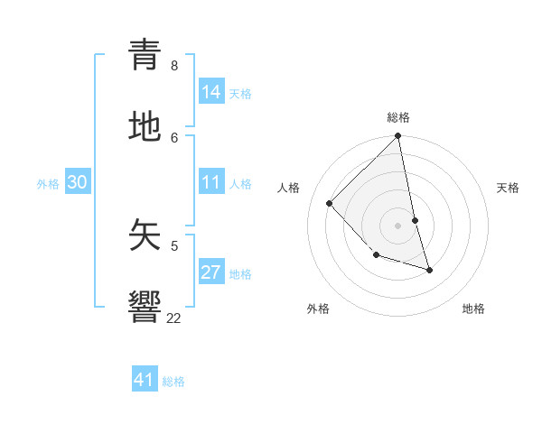 青地 矢響さんの総格は41画の5点!