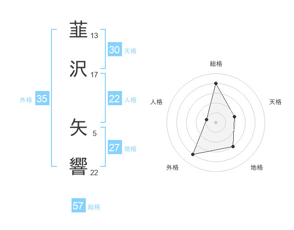 韮沢 矢響さんの総格は57画の4点!