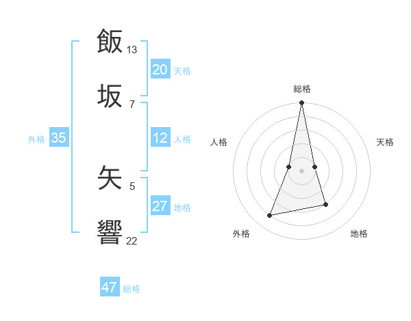 飯坂 矢響さんの総格は47画の5点!