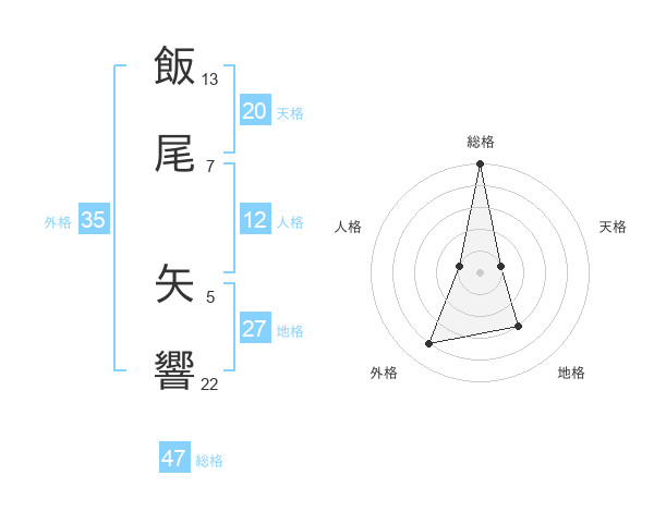 飯尾 矢響さんを姓名の画数から五運を鑑定