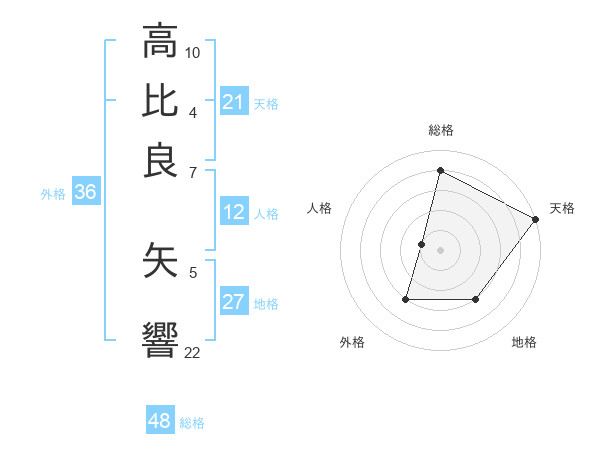 高比良 矢響さんの天格は21画の5点!