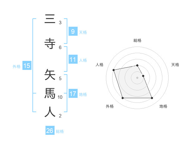 三寺 矢馬人さんの総格は26画の2点!