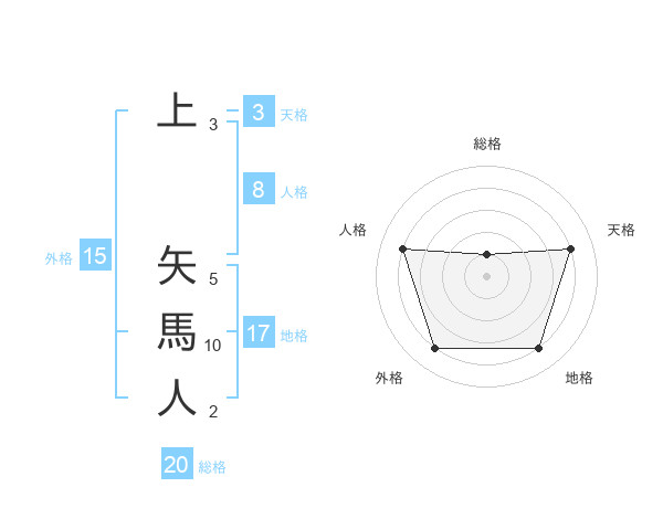 上 矢馬人さんを姓名の画数から五運を鑑定