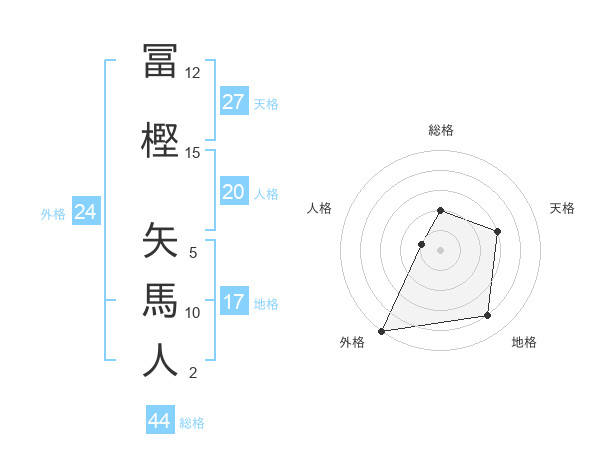 冨樫 矢馬人さんの外格は24画の5点!