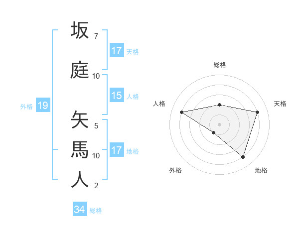坂庭 矢馬人さんの総格は34画の2点!
