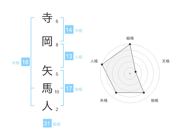 寺岡 矢馬人さんを姓名の画数から五運を鑑定