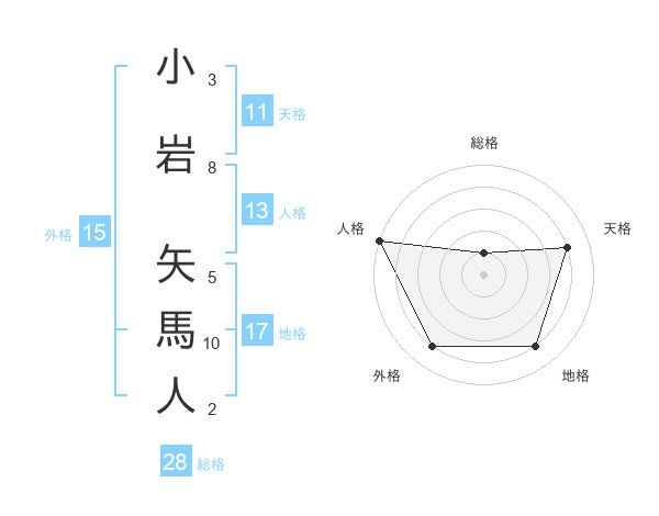 小岩 矢馬人さんの総格は28画の1点