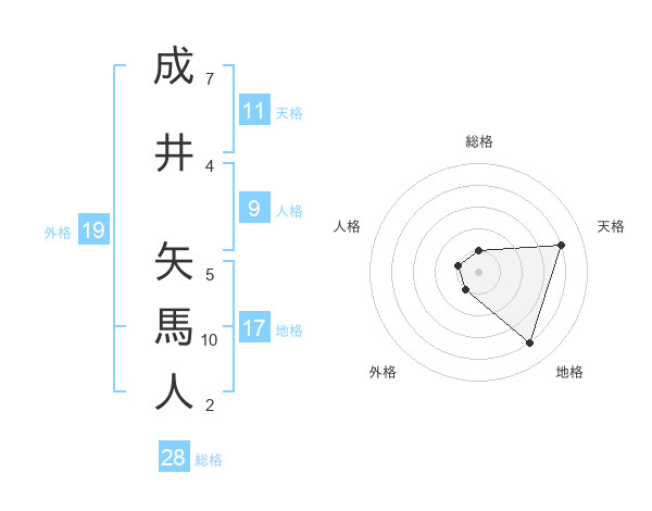 成井 矢馬人さんを姓名の画数から五運を鑑定