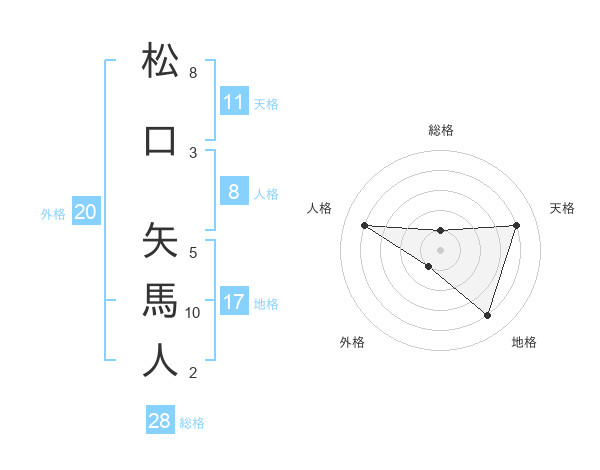 松口 矢馬人さんを姓名の画数から五運を鑑定