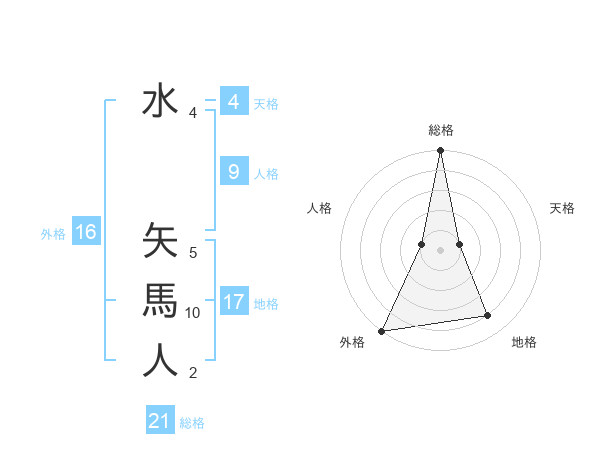 水 矢馬人さんの総格は21画の5点!