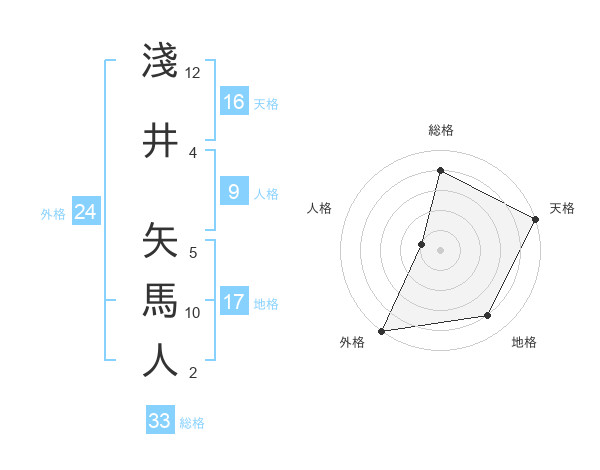 淺井 矢馬人さんを姓名の画数から五運を鑑定