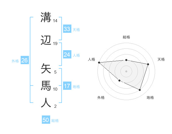 溝辺 矢馬人さんの総格は50画の2点!