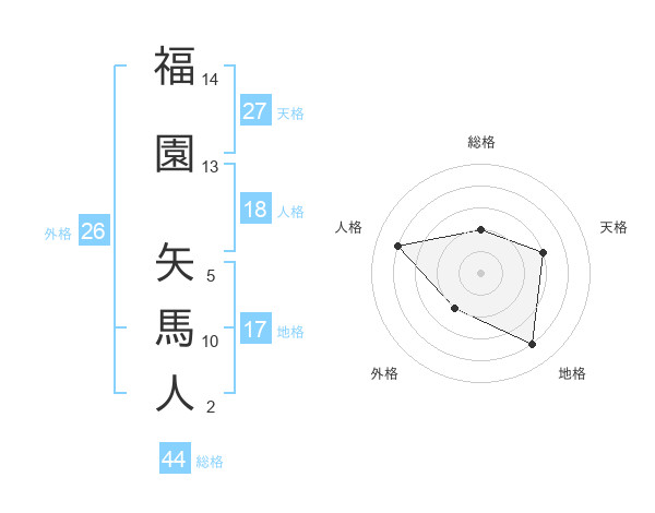 福園 矢馬人さんを姓名の画数から五運を鑑定