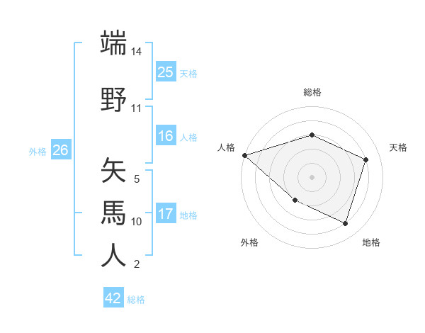 端野 矢馬人さんの人格は16画の5点!