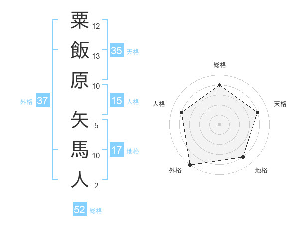 粟飯原 矢馬人さんを姓名の画数から五運を鑑定