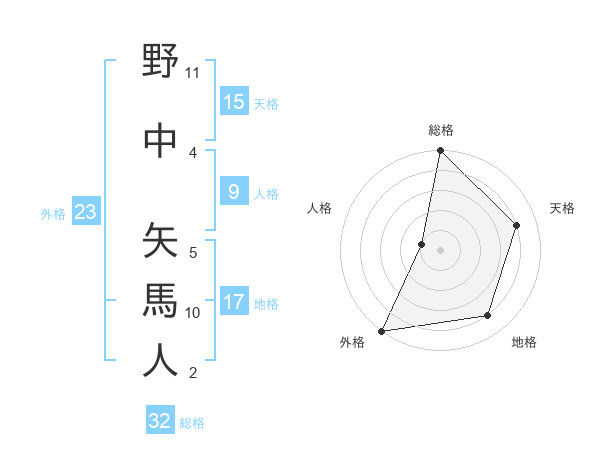 野中 矢馬人さんを姓名の画数から五運を鑑定
