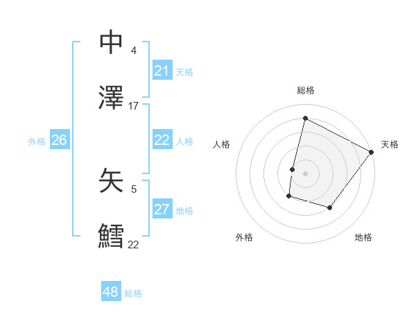 中澤 矢鱈さんの天格は21画の5点!