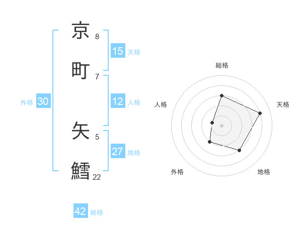 京町 矢鱈さんを姓名の画数から五運を鑑定