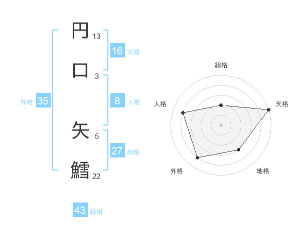 円口 矢鱈さんを姓名の画数から五運を鑑定