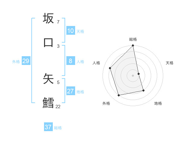 坂口 矢鱈さんを姓名の画数から五運を鑑定