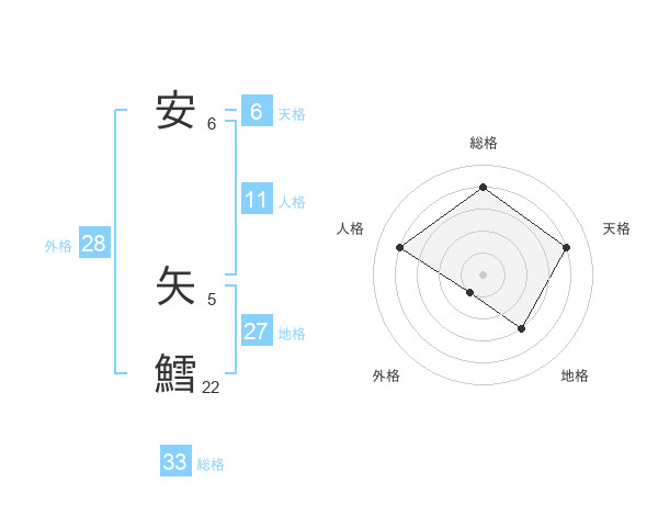 安 矢鱈さんを姓名の画数から五運を鑑定