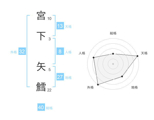 宮下 矢鱈さんの天格は13画の5点!