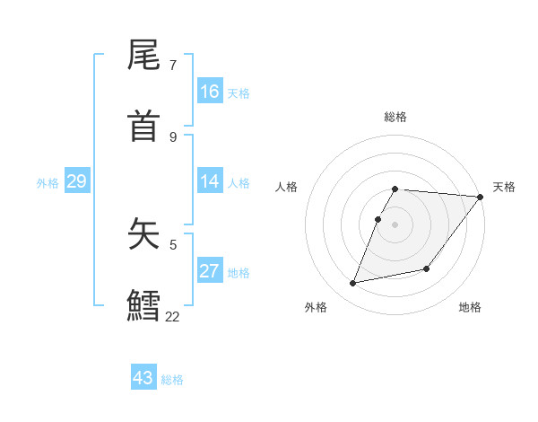 尾首 矢鱈さんを姓名の画数から五運を鑑定