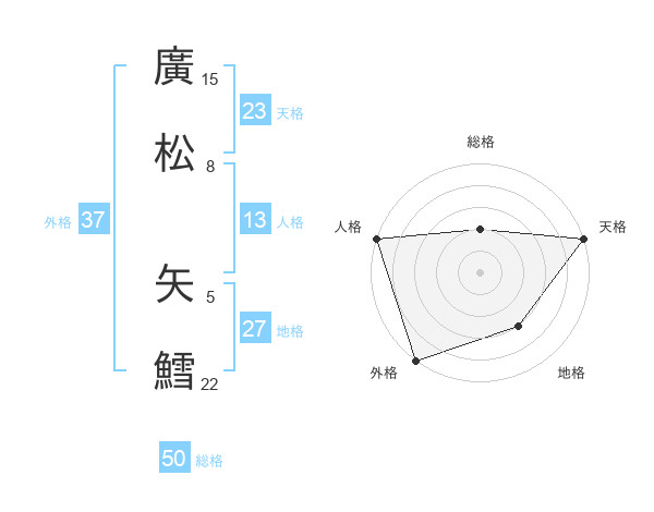 廣松 矢鱈さんの総格は50画の2点!