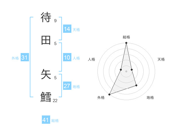 待田 矢鱈さんを姓名の画数から五運を鑑定