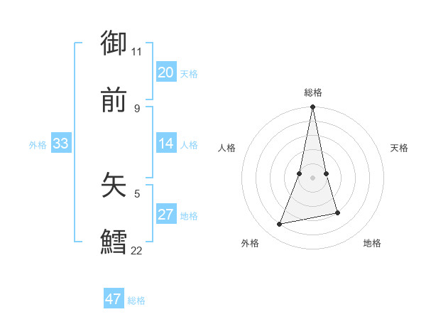 御前 矢鱈さんを姓名の画数から五運を鑑定