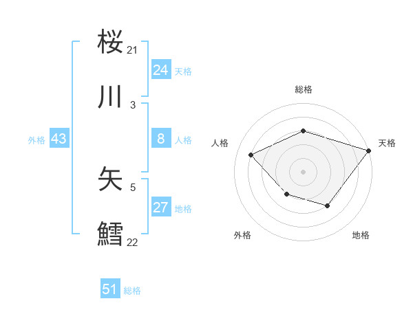 桜川 矢鱈さんを姓名の画数から五運を鑑定