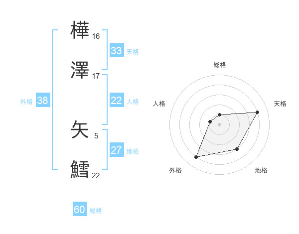 樺澤 矢鱈さんを姓名の画数から五運を鑑定
