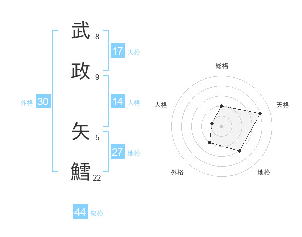 武政 矢鱈さんを姓名の画数から五運を鑑定